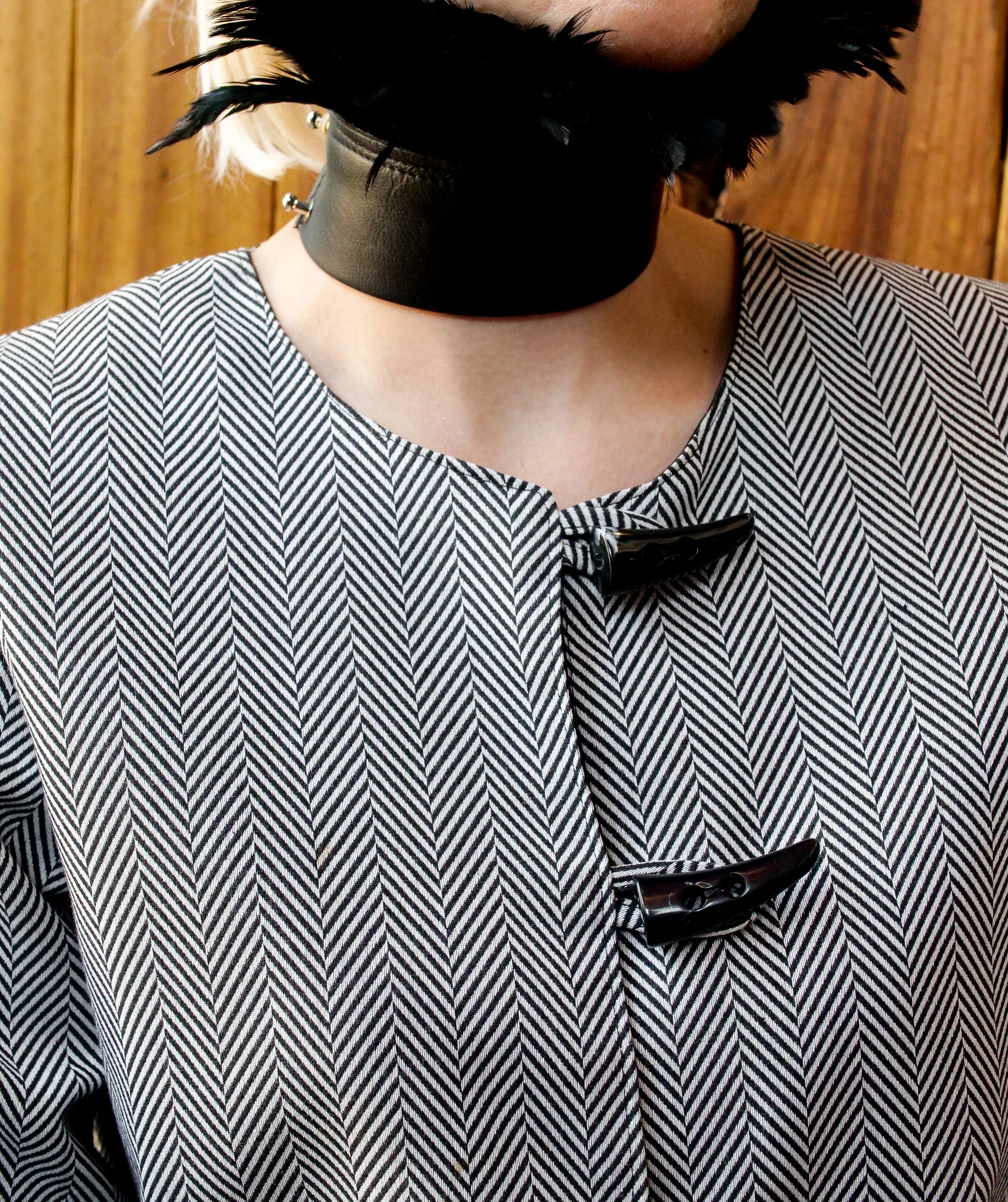 - Horn buttons at front and sleeves
