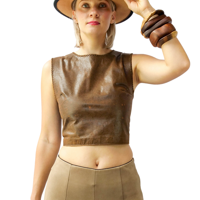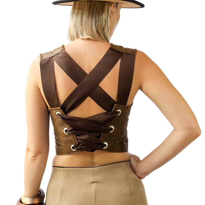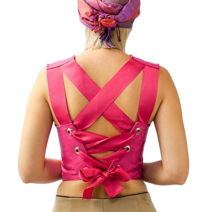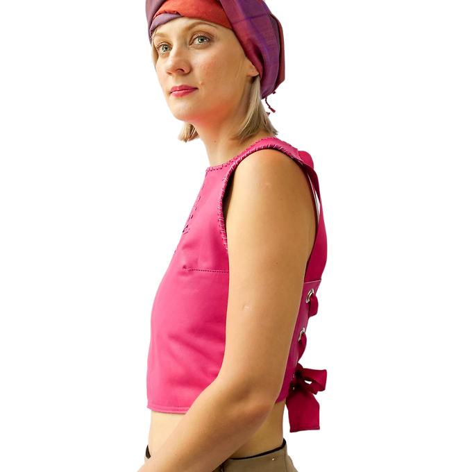 Open Back Lace Up Leather Tank Top